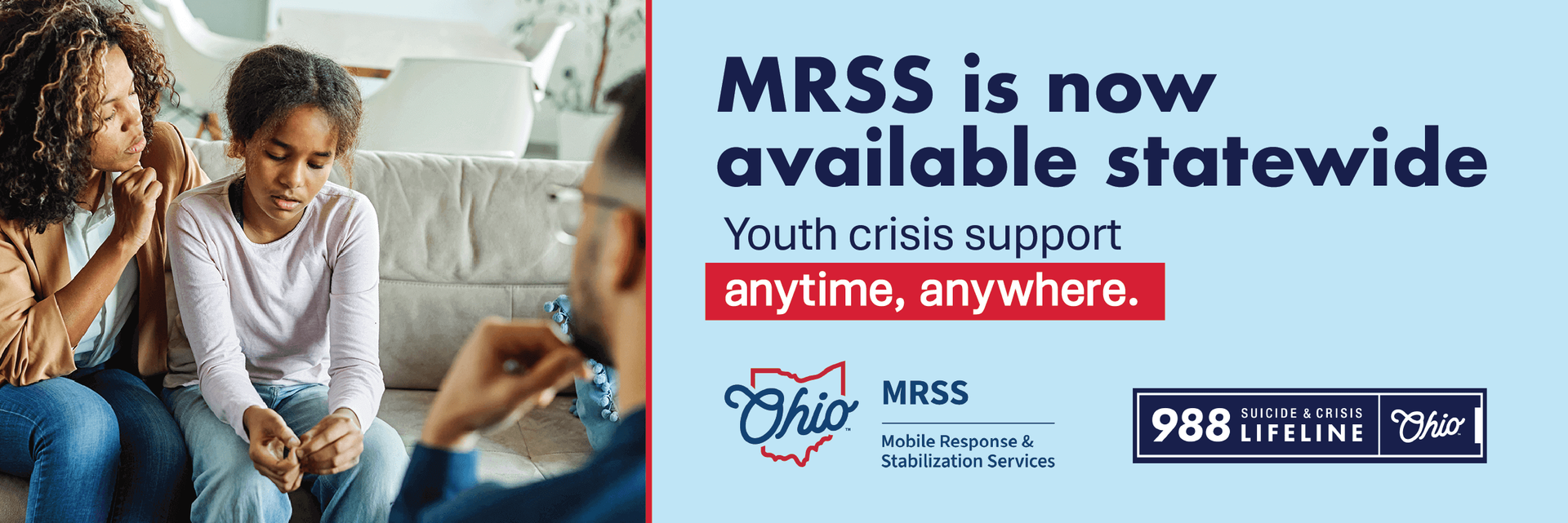 MRSS is a no-cost service that provides behavioral health crisis support for youth ages 20 and under.